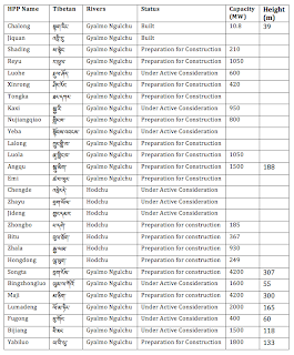 Table 1: Hydropower projects on Gyalmo Ngulchu, the Salween River on the Tibetan Plateau